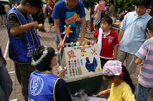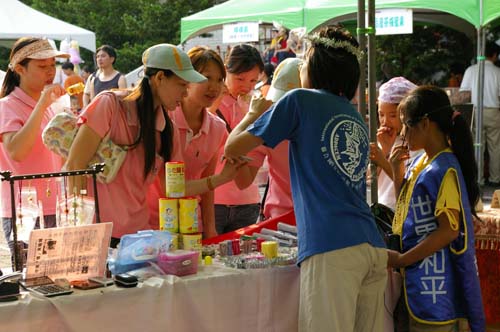 成果說明:活動當天場面非常熱鬧,除了運動比賽外,還有啦啦隊、有氧舞蹈等的演出,將現場氣氛帶到最高點;而明安國際企業股份有限公司更帶領員工響應公益;我們所義賣的娃娃、雞蛋冰造成一股熱潮,供不應求;甚至還有熱心的員工當起世界和平會的志工,沿街叫賣二手娃娃,帶動了同仁的愛心,為孩子盡一份心。