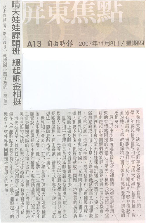【自由時報報導】情天娃娃課輔班 緩起訴基金相挺
