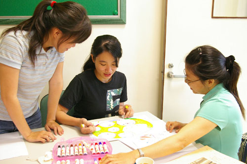 參加藝術課輔志工培訓課程的林霈玟,目前就讀於靜宜大學兒福系三年級也說,藉由暑假的時間來參與藝術輔導課程的培訓,為了將來從事兒童福利的社會工作,希望透過藝術輔導的學習,未來可以透過更多樣性的方式,增加與受助孩童互動的管道與技巧。