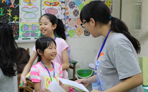 桃園市助理社工員 鄧湘瀅 暑假的尾聲,世界和平會「心願小王子」偏鄉兒童閱讀寫作班來到桃園市龜山區的自強國小,進行一場特別的閱讀營。原本有些害羞膽怯的小朋友,在暖身活動中慢慢卸下心防,在各種遊戲中彼此認識、熟悉。有趣的賓果遊戲,孩子們想要將紙上的格子連成線,必須完成每個格子中的指定任務,例如:尋找戴眼鏡的人、尋找會說繞口令的人、尋找願意給你一個擁抱的人…等任務,透過暖場小活動的競賽動力,孩子們笑顏逐開,很快地便與隊輔哥哥、姊姊玩成一片。建立關係之後,活動希望帶給孩子們的概念(合作、互助、欣賞等),將會更有效深入孩子們心中。 說故事時間來囉!首先,是金魚姊姊帶來的「誰是第一名」。從故事中讓孩子們學習到,每個人的創作都各有優點,而且是獨一無二的,大家學習欣賞和自己不一樣的作品,因為尊重別人的想法,所以不隨意批評他人。聽完故事後,也讓孩子們畫一幅夢想中的學校,每個人的想像和創意不盡相同,並鼓勵每位孩子上台發表,練習表達腦海中的想法,也引導台下的孩子說出每幅畫作的優點,大家實際體驗尊重和欣賞的重要。 孩子們最愛的遊戲時間進行不一樣的比一比活動,考驗各組的團結合作精神,大家先推派代表競賽,再揭曉題目,比誰的眼睛比較長、比誰的腳張得最大、比誰唸書唸得快…等,出乎意料的題目讓孩子們驚訝又驚喜。簡單的小遊戲,卻讓孩子們激起團隊意識,為了組別的榮譽而奮力加油,大家玩得不亦樂乎! 第二階段的故事是香瓜姊姊說的「大野狼的短褲」,故事中,大野狼一直受到漂亮褲子的誘惑,容易喜新厭舊,但是卻懂得靠自己的勞力去獲取商品。所以,香瓜姊姊讓孩子們寫一封信給大野狼,寫出以往對大野狼的印象,並提出建議給故事中的大野狼。孩子們發現大野狼再也不只是個壞心的大壞蛋,打破對牠的負面刻板印象,而給予大野狼的建議也很實際,小洋說:「你可以多存一點錢,再去多買幾件便宜的褲子」。小妮也肯定地說:「覺得大野狼很有耐心,一直幫商店老板做事」。因為這隻大野狼真的太特別了,認真付出自己的勞力,讓人感受到牠的努力,所以每個小朋友都在信中都寫到想跟牠交朋友呢! 豐富的閱讀寫作活動,讓孩子們認識好多朋友與隊輔哥哥、姊姊們,也學習到許多重要的人際互動觀念:欣賞別人和自己的差別、肯定他人的努力、真誠表達想法等。孩子們一直興奮地問:「以後還會辦這個活動嗎?我還要來參加哦!」 「心願小王子-偏鄉兒童閱讀寫作培力」服務計劃