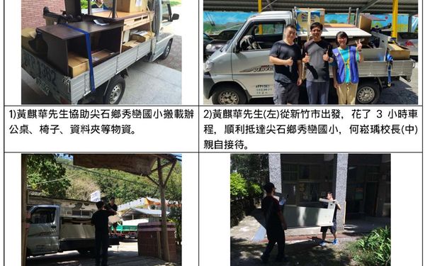 新竹縣社工員 賴怡秀 在志工伙伴的介紹,我們有幸認識了海智精密機械有限公司負責人 黃麒華先生,先是在六月底邀集員工與親友們舉辦了一場感恩饗宴,與偏鄉孩童共度一個幸福快樂的午後。黃先生對我們的服務內容非常支持與認同,並希望自己還可以多做些什麼,亦會同親友們捐贈愛心物資,就連隔壁鄰居在汰換傢俱時,也建議可以捐給世界和平會服務的弱勢家庭或偏鄉小學,對本會服務推動不遺餘力。黃先生每每辛苦整理完畢後再向友人借用小貨車,驅車前往偏鄉,將愛心物資親自搬運送至案家或學校。 特別感謝黃先生對本會服務的支持與協助,讓本會工作人員、受服務之家庭及偏鄉小學感受到社會善心的溫暖。 黃麒華先生送愛至偏鄉之照片分享105.10.04 搬載愛心物資,送至尖石鄉秀巒國小105.11.03 搬載愛心物資,送至五峰鄉服務家庭105.11.14 搬載愛心物資,送至尖石鄉秀巒國小 服務照片如下:
