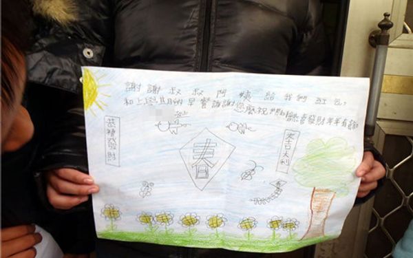 「老師喔~您要過來家裡,好啊…」家長回答著。 同仁與志工夥伴們於周日,錯開家長上班的日子,一家一家的送助學紅包給案家們,當天還有些家長特地從上班場所趕回家,結束匆匆再趕去上班。 孩子看到紅通通的助學紅包,怯怯地不敢伸手,臉蛋卻笑得紅通通的!穿上捐助人提供的保暖厚外套,孩子像個小雪人、開心揮舞超過手臂的袖子,終於可以脫掉會掉棉絮的舊外套,孩子們開心著。 拿出大大的感謝卡,是孩子用盡家中所有的素材:笑臉貼紙、彩色鉛筆、好孩子卡片等,孩子們絞盡腦汁的製作出,害羞地拿給我們、開心的笑著。謝謝捐助人的愛心捐助、志工夥伴及同仁們給予案家的協助與關懷!