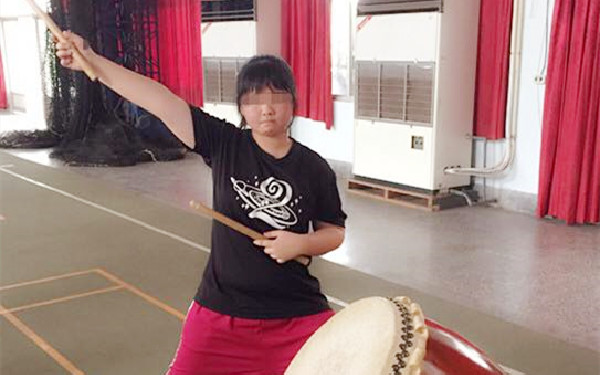 小甄天生肢體不協調,且不自覺發出打嗝聲音。起初加入太鼓隊時挫折感及自卑感重,所幸透過指導老師與團員的陪伴與鼓勵,練習太鼓至今已一年多,已可勝任大鼓及側鼓的打擊,小蓁的身體狀況也漸漸的改善。